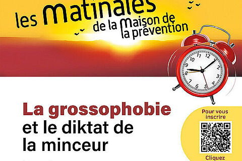 RencontreLe 17 févr. 2026 MATINALE PRÉVENTIONLe 17 février de 9h30 à 12h30. La maison de la prévention vous invite à "Grossophobie, le diktat de…