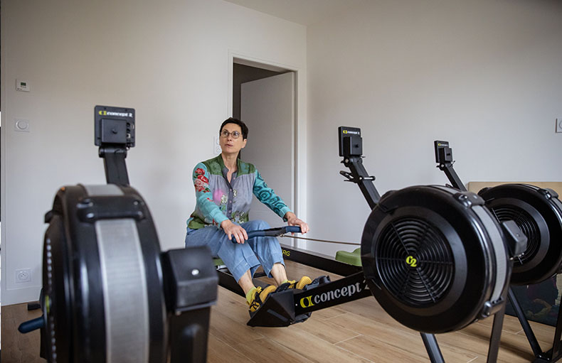 Dans une salle dédiée aux patientes, trois rameurs sont alignés. Gwenaëlle Landrieu, kinésithérapeute depuis trente-quatre ans et fontenaysienne depuis peu, est en pleine démonstration, poignées en main. Sans cesser les coups de rame, elle explique : « L’activité physique régulière pendant ou après un cancer est très bénéfique. Elle permet de diminuer les douleurs liées au traitement, diminue l’anxiété et la fatigue, améliore le sommeil et procure un renforcement positif aussi bien mental que physique. » Particulièrement efficace en matière de renforcement musculaire, le rameur est une bonne discipline pour lutter contre la sarcopénie, c’est-à-dire la perte de la masse, de la force et de la fonction musculaires. « L’activité physique, en libérant les endomorphines, permet de récupérer les derniers degrés de mobilité articulaire, souligne la kiné. De plus, le sport améliore l’estime de soi. D’une certaine façon, cela a une incidence sur la place des femmes dans la société. » Mais la pratique du sport a un coût. Les personnes en situation de précarité ne sont pas toujours en mesure de financer une activité sportive régulière. Fort de ce constat, Mme Landrieu, qui fait partie du réseau des kinés du sein (RKS), et plusieurs de ses patientes, ont eu l’idée de monter un collectif dans le but de financer des abonnements sportifs en club ou en association pour des femmes précaires atteintes d’un cancer (pas uniquement du sein) ou guéries. Créée le 2 juillet 2024, l’association Phœnixea s’adresse aussi bien aux habitantes de Fontenay, que de Vincennes et de Saint-Mandé. Le bureau est composé de sept personnes ; le collectif en compte une vingtaine, anciennes patientes ou actuelles. « La moitié de mes patientes n’ont jamais fait de sport, mais elles y parviennent grâce au concept de Jocelyne Rolland, Avirose. Une fois par an est organisé un challenge: les championnats de France d’aviron indoor, auxquels participent Avirose. Cette année, nous allons présenter douze équipes. » Les compétitions ont lieu sur l’île Fanac, à Joinville, où est situé un club d’aviron. Gwenaëlle et ses patientes s’y retrouvent tous les lundis soirs pour pratiquer l’Avirose en musique : « Mais c’est payant et nousnous sommes rendu compte que toutes ne pouvaient pas y participer en raison du coût financier ».
